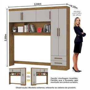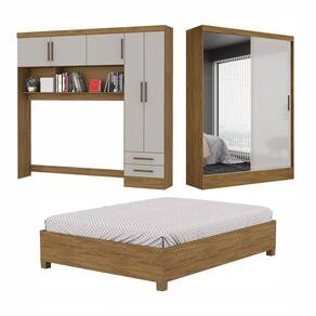 Quarto Modulado Casal com Espelho e Cama 7 Portas Belém Plus Carioca Móveis - Cinza