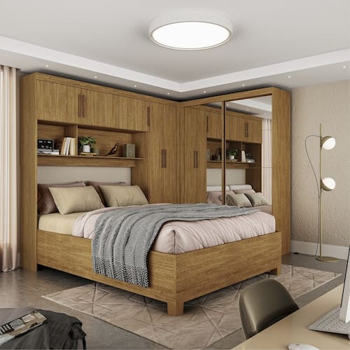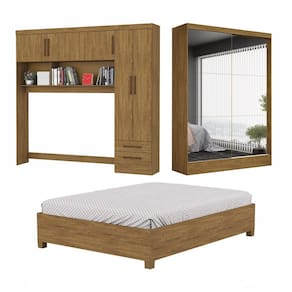 Caracter?sticas: Estrutura em MDP Acabamento Pintura UV 7 Portas sendo 2 de correr Espelho em 2 portas 4 Gavetas Corredi?as met?licas 2 Nichos externos 4 Prateleiras Estrado de madeira P?s da cama em PVC Ideal para colch?o de 138cm N?o acompanha colch?o
