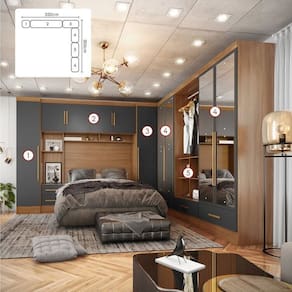 1x Módulo Closet Smart Aéreo Com Criado 2 Gavetas Com Maleiro Cinamomo/Cinza Largura: 185.6 Altura: 217 Peso: 64.75 Profundidade: 40 Necessita Montagem: Sim