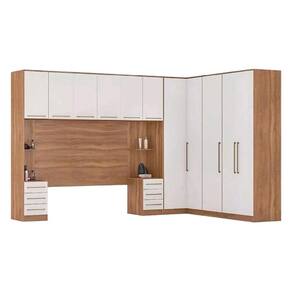 Quarto Casal Modulado Irlanda 7 Peças (3 Armários + 1 Ponte Aérea + 3 Complementos) QCM161 Amendola/Branco - Demóbile