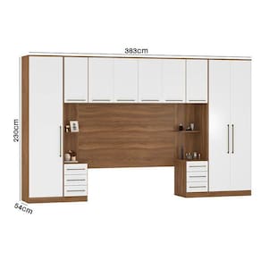 O ambiente é composto por (L x A x P): 1x Guarda-Roupa Modulado Irlanda 1 Porta: 56 x 230 x 54 cm 2x Guarda-Roupa Modulado Irlanda 1 Porta com Mesa de Cabeceira: 40 x 230 x 54 cm 1x Guarda-Roupa Modulado Ponte Casal Irlanda: 168 x 74 x 54 cm 1x Guarda-Roupa Modulado Irlanda 2 Portas: 79 x 230 x 54 cm 1x Painel de Cabeceira Casal Irlanda: 168 x 107 x 1,5 cm