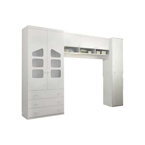 DESCRIÇÃO O Quarto Modulado Infantil com Guarda Roupa 02 Portas Eloísa é um ambiente é composto por Guarda Roupa 02 Portas e 03 Gavetas, ponte aéreo 03 portas com nichos inferiores que gera a possibilidade de ser como ponte para o berço ou cama, mais Guarda Roupa 01 Porta, todos com ótimos espaços internos para guardar as roupas pequenas e todo enxoval da sua criança.