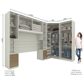 ESPECIFICACOES TECNICAS: Qtd. Portas: 10 Und. Tipo Porta: Bater Material da Porta: MDP Tipo de Puxador da Porta: Externo em aluminio Tipo de Dobradica: 35mm Soft Close Qtd. Gavetas e Prateleiras: 9 Und / 12 und Material da Gaveta: MDF/MDP Tipo de Gaveta: Externa com puxador em aluminio Material da Corredica: Metalica Telescopica Peso Maximo por Gaveta: 3 Kg Possui Organizador de Gaveta e Ganchos: Nao Possui Espaco para Vestidos Longos: Nao Possui Iluminacao Led e porta objetos: Nao Possui Maleiro: Sim Material da Prateleira: MDP Peso Maximo por Prateleira: 8 Kg Nicho com Cabideiro: Sim Possui Cabideiros e calceiros: 2 Und. Possui Espelho: Sim Tipo de Fixacao do Espelho: Molduras Quantidade de Espelhos: 2 Und. Medida do Espelho: 2320 x391 x20mm Tipo Roupeiro: Modulado Quantidade de Pecas: 5 Und. O Modulo Pode ser Utilizado Individualmente: Sim Medidas Montado -A x L x P-: 240,5 x 354,5 x 54cm Peso Produto Montado -Kg-: 123Kg Produto Suporta ate -Kg-: 90 Kg Informacoes Complementares: Gavetas com corredicas telescopicas, Puxadores, cabideiros e calceiros em aluminio Material Principal: MDP