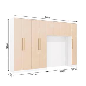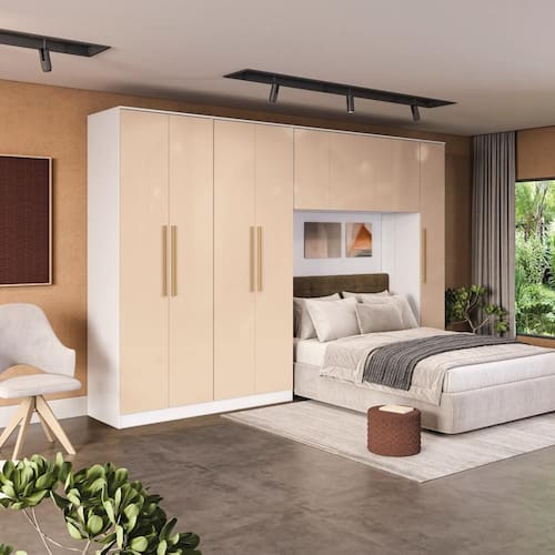 Para quem sempre sonhou com um quarto planejado, o Modulado Adapt da Kappesberg é a escolha certa. Produzido em MDP de 15mm, o que proporciona mais robustez, firmeza e qualidade, o Combo CB1162 conta com cinco peças, sendo a opção ideal para ambientes menores e compactos, garantindo uma composição versátil para organizar roupas e calçados com beleza e funcionalidade. Unindo peças curingas, os módulos são individuais, permitindo a montagem conforme o seu espaço e preferência. Com altura de 2,30m e 56cm de profundidade, os módulos contam com amplo espaço e uma ótima divisão interna, com nichos de tamanhos diferentes, ideais para guardar calçados e roupas dobradas. Os cabideiros, metálicos e de suporte interno, permitem organizar peças maiores, como casacos e vestidos sem amassar. Já as gavetas, com corrediças telescópicas, garantem uma melhor otimização de espaço e são perfeitas para acessórios e peças menores, deixando seu quarto sempre organizado. E para um melhor aproveitamento de espaço na vertical, os aéreos são uma ótima opção, permitindo organizar travesseiros e cobertores com facilidade. Além disso, com uma composição reta, para deixar seu quarto com cara de planejado, o combo conta com painel e cabeceira estofada, acomodando camas de casal tradicional, de 138cm, tornando seu quarto mais completo e tornando suas noites de sono ainda mais confortáveis. E com sete camadas de pintura, tanto na parte interna quanto na externa, a caixaria conta com pintura na cor branca, enquanto que as portas, são na cor macadâmia, ambas com acabamento em brilho. Uma combinação linda e elegante, ideal para quem busca por ambientes diferenciados e com mais luminosidade. Os destaques ficam com o sistema de amortecimento nas portas, garantindo um fechamento suave e sem ruídos, e dos puxadores em MDF na cor dourada, completando os diferenciais do produto e deixando seu quarto do jeito que você sempre sonhou. Renove seu quarto com toda a qualidade e beleza que o Modulado Adapt da Kappesberg oferece e aproveite cada momento.