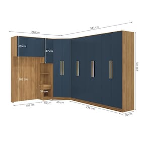 1x Guarda-Roupa de Canto 2 Portas Kappesberg Adapt Nogueira/Azul Profundo 105cm;