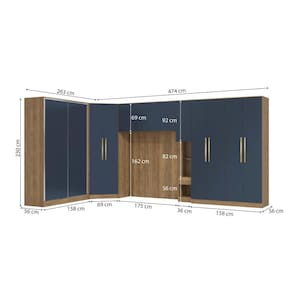 1x Guarda-Roupa de Canto 2 Portas Kappesberg Adapt Nogueira/Azul Profundo 105cm;