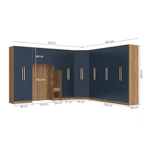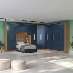 1x Guarda-Roupa de Canto 2 Portas Kappesberg Adapt Nogueira/Azul Profundo 105cm;