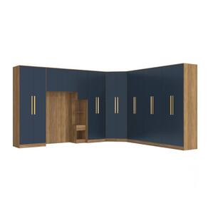 1x Guarda-Roupa 6 Portas 4 Gavetas Kappesberg Adapt Nogueira/Azul Profundo 237cm;