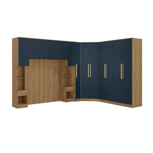 1x Guarda-Roupa de Canto 2 Portas Kappesberg Adapt Nogueira/Azul Profundo 105cm;