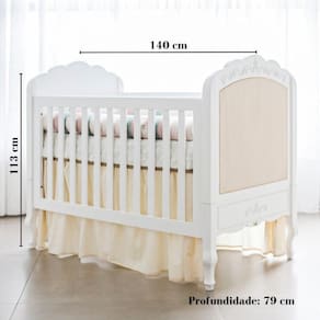 Móveis clássicos, trazendo o estilo provençal com muita sofisticação. Com design charmoso e arabescos entalhados, os móveis da linha Versailles deixam o quarto digno da realeza. O berço possui uma estrutura robusta e durável, pois utiliza MDF de 2,5 cm de espessura, e mastros em madeira maciça. Os seus pés são fresados em madeira no formato legítimo Luís XV, e os mastros no mesmo material com 5 cm de espessura. O estrado pode ser montado em 3 alturas e se transforma em mini cama acompanhando o crescimento do bebê A cômoda trás o acabamento de alto padrão traz: pintura laca, aplicação de palha talagarça nas gavetas e porta e arabescos entalhados. Puxadores de metal. Possui corrediças telescópicas largas, de alta resistência. E dobradiças soft close, com fechamento com amortecimento. Acabamento: Laca Possui Rodízio: Não Acompanha Colchão: Não Altura do Conjunto: 113 cm Ambiente: null Ambiente Principal: Quarto de Bebê Cor: Branco Cor Predominante: Branco Estrado com Regulagem de Altura: Sim Garantia do Fornecedor: 12 meses Informação Complementar: 1x Berço Versailles Plus BrancoLargura: 140Altura: 113Peso: 70Profundidade: 79Necessita Montagem: Sim1x Cômoda Infantil Versailles Plus 4 Gavetas 1 Porta BrancoLargura: 115Altura: 93Peso: 85Profundidade: 52Necessita Montagem: Sim Material Principal: MDF Permite a Utilização de Cama Auxiliar: Não Pintura Atóxica: Sim Marca: Timber