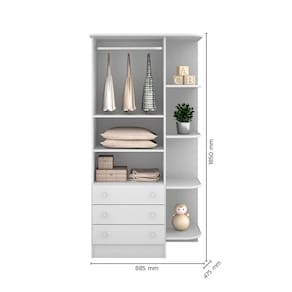 Medida de Cada Item: Guarda Roupa: 185cm x 88,5cm x 47,5cm Berço: 92,8cm x 68cm x 133,5cm Comoda: 79cm x 64cm x 45cm