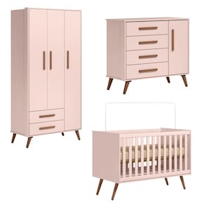 A Linha Q Encanto Retrô foi projetada especialmente para quem deseja móveis espaçosos e de qualidade para o quarto da criança. Com um design encantador, compostos por pés retrô de madeira maciça, esse conjunto deixará o ambiente ainda mais charmoso e aconchegante. O guarda-roupas e a cômoda possuem sistema anti-tombamento, que garante segurança para evitar riscos de acidentes. O berço possui certificação do Inmetro, que garante segurança para o bebê e noites mais tranquilas e ainda pode ser montado como mini cama, para acompanhar o crescimento da criança Acabamento da Gaveta: Pintura UV Acabamento da Porta: Pintura UV Acompanha Cama Auxiliar: Não Acompanha Colchão: Não Acompanha Manual de Instalação: Sim Acompanha Suporte para Mosquiteiro: Sim - Sem Véu Altura do Conjunto: 190 cm Ambiente Principal: Quarto de Bebê Certificado: 006 495/2021 Certificado INMETRO (código): 006 495/2021 codigo_ean: 7900288263827 Complexidade da Montagem: Alta: deve ser montado por um montador especializado Cor: Rosa Acetinado Cor do Produto: Rosa Acetinado Cor Flex: Não Cor Interna: Branco Acetinado Escala de Brilho: Acetinado Escala de Brilho da Gaveta: Fosco Escala de Brilho da Porta: Fosco Escala de Brilho da Prateleira: Fosco Estampado: Não Estrado com Regulagem de Altura: Sim Estrado Regulável em Quantas Posições: 03 Largura do Conjunto: 94 cm Linha ou Coleção: Q Encanto Retro Manual de Montagem e Instalação: https://product-hub-prd.madeiramadeira.com.br/531089195/documents/a1a6c4ea-1fe2-491a-bf7e-d9b6047d02e883223948128417583175862754.pdf Marca: Qmovi Material da Gaveta: MDP Material da Porta: MDP Material da Prateleira: MDP Material do Estrado: MDF Material do Fundo: HDF Material do Puxador da Gaveta: MDF Material do Puxador da Porta: MDF Material Principal: MDP Medida de Cada Item: Guarda Roupa: 190cm x 94 x 47 Berço: 92cm x 74cm x 133cm Comoda: 84cm x 94 cm 42cm modular: Não Montagem Flex: Não Necessita Montagem: Sim Origem do Produto: Nacional Permite a Utilização de Cama Auxiliar: Não Peso: Guarda Roupa: 59,5kg Berço: 25,1kg Comoda: 30,4kg Peso de Cada Item: Guarda Roupa: 59,5kg Berço: 25,1kg Comoda: 30,4kg Pintura Atóxica: Sim Porta Janelada: Não Possui Capitonê: Não Possui Certificado: Sim Possui Espelhos: Não Possui Gavetas: Sim Possui Grade: Não Possui Portas: Sim Possui Prateleiras: Sim Possui Rodízio: Não Possui Trocador: Não Profundidade do Conjunto: 133 cm Quantidade de Gavetas: 06 Quantidade de Portas: 04 Quantidade de Prateleiras: 04 Recomendações de Uso, Manutenção e Limpeza: Não utilize produtos químicos ou abrasivos para limpar seus móveis. A manutenção em geral, exige apenas a retirada do pó com um pano seco. Mas, a limpeza também pode ser feita utilizando um pano levemente umedecido com água e/ou álcool. Em seguida, a superfície deve ser seca com a ajuda de um pano limpo e macio. Sistema de Montagem: Parafuso, cavilha e giro fixo Suporta Até (kg): 61.0000 Tamanho do Colchão Indicado (L x C): 70X1,30 Tipo de Corrediça da Gaveta: Metálica Simples Tipo de Dobradiça/Corrediça da Porta: Metálica Tipo de Estrado: Fixo Tipo de Grade: Fixa Tipo de Guarda-Roupa: Bebê Tipo de Porta: Bater Tipo de Puxador da Gaveta: Externo Tipo de Puxador da Porta: Externo