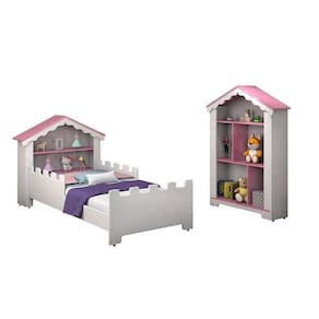 Conjunto De Quarto Princesa Com Cama E Estante Branco/rosa - Vitamov
