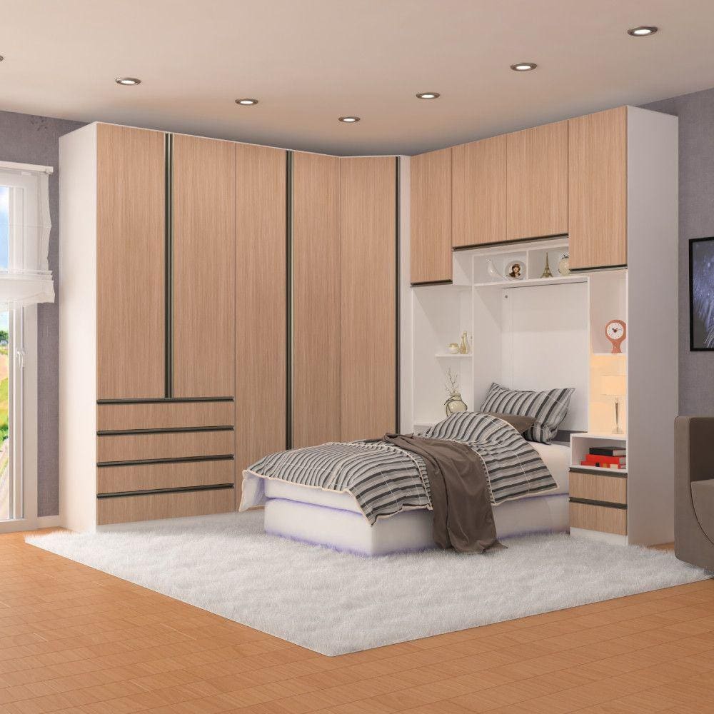 Quarto Completo de Canto Solteiro com 7 Módulos Prime Plus Luciane Móveis