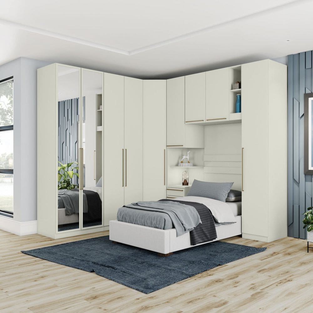Quarto Completo de Canto Solteiro com 6 Módulos e Espelho Prime Plus Luciane Móveis