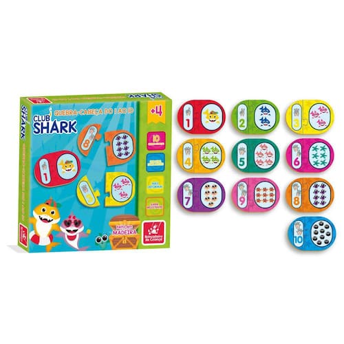 Quebra-Cabeça 1 Ao 10 Club Shark Em Madeira BcQuebra-cabeça Do 1 Ao 10 Club Shark Em Madeira.Encaixa facilmente, não deforma e é super resistênte.20 peças em madeira.Acima de 4 anos.Dimensão embalagem: 5x18x24 centímetros.Material: MadeiraMarca: brincadeira de criança.Certificado do INMETRO: CE-BRI/OCP - N 00013-01 NM 300/2002