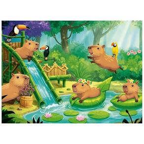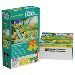 Quebra-cabeça 100 peças Capivara Club Mergulhe em uma cena mágica e cheia de alegria com este quebra-cabeça de 100 peças A imagem encantadora mostra um grupo de capivaras se divertindo em um parque natural, rodeadas por tobogãs de bambu, folhas flutuantes e amigos coloridos como tucanos e araras.Com cores vibrantes e detalhes fofos, este quebra-cabeça estimula a imaginação e desenvolve o raciocínio lógico de forma divertida. Ideal para crianças e adultos que amam natureza, animais e momentos de descontração em famíliaTamanho da imagem : 36,3 x 26,4 cm Idade recomendada: a partir de 6 anosMonte peça por peça e descubra a beleza dessa floresta encantada Homologação Inmetro: CE-BRI/ICEPEX-N 01264-25-23