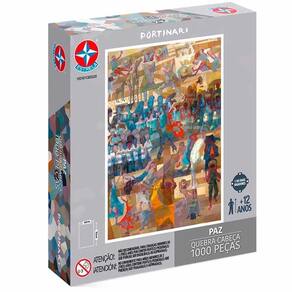 Quebra-Cabeça - 1000 Peças - Portinari - Paz - Estrela: Monte as 1000 peças do Quebra-Cabeça para formar uma pintura da obra "Paz", do grande artista modernista brasileiro Cândido Portinari. Quebra-Cabeça Estrela Portinari é composto por peças produzidas em papel cartão e traz para bem perto de você um dos destinos mais encantadores do mundo. Com qualidade de impressão em alta definição para valorizar cada detalhe dessa linda obra de arte. As peças são de fácil encaixe para a brincadeira ser completa. Montado tem a dimensão de 70.8 cm de altura por 48.5 cm de comprimento • Dicas de como montar: 1) Antes de montar, arranje uma base um pouco maior do que o quebra-cabeça a ser montado 2) Comece separando o quebra-cabeça pelas peças com laterais sem encaixe para a montagem das bordas 3) Organize as demais peças por cor, para facilitar a visualização do espaço que cada peça deverá ocupar 4) Inicie por um dos cantos e continue a compor a figura orientando-se pelas cores e pela ilustração 5) Sempre monte o quebra-cabeça em um lugar plano e, após terminado, verifique se todas as peças estão encaixadas corretamente 6) Quando terminar de montar esse lindo quebra-cabeça de cachorrinhos, você pode emoldurar para usar como parte da decoração Informações: • Produto: Quebra-Cabeça Paz Portinari 1000 peças • Marca: Estrela • Coleção: Portinari • Tipo: Quebra-Cabeça • Categoria: Quebra-Cabeça e Puzzles • Dimensões: 70,8 x 48,5 cm (montado) • Tamanho das peças: 1,9 cm • Conteúdo: 1 quebra-cabeça de 1008 peças • Recomendação: para crianças a partir de 12 anos de idade Especificações: • Modelo: Quebra-Cabeça Paz Portinari • Referência: 1001611300029 • Código de Barras: 7896027558098 • Embalagem (C x A x L): 31 x 25,5 x 08 cm • Embalagem (Peso): 0.482 kg • Material / Composição: Cartonado • Certificado: Órgãos Autorizados - OCP´S (Organismos de Certificação de Produtos) Benefícios de montar quebra-cabeça: • Eleva a autoestima • Exercita a memória • Estimula o raciocínio • Exercita o imaginário • Desenvolve a criatividade • Desenvolve percepção visual • Desperta a atenção e curiosidade • Desenvolvimento neuropsicológico • Estimula habilidades motoras básicas • Incentiva a comunicação e linguagem • Desenvolve aspectos emocionais e afetivo • Estimula o reconhecimento de formas e cores Aviso: • As imagens são meramente ilustrativas • Os tamanhos e medidas são aproximados • As cores e estampas dos produtos podem ter variações • As informações são de responsabilidade do fabricante ou fornecedor Ean: 7896027558098