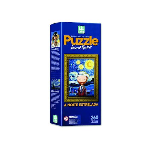 Quebra cabeça 260pçs van gogh arte pintura a noite estrelada Q.C. - a noite estrelada - lm Puzzle releituras de artes, a noite estrelada quebra cabeça para divertir a familia inteira Recomendado +7 Tamanho final 60x40 cm 260 pçs Ref. 0581 Nig brinquedosHomologação Inmetro: CE-BRI/IQB 005923 53892/20-048