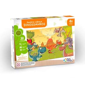 Quebra-Cabeça - 30 Peças - Dinossauros - Pais e Filhos: Embarque em uma aventura jurássica selvagem e colorida com o Quebra-Cabeça Dinossauros! Este quebra-cabeça encantador apresenta o fascinante mundo dos animais na Era Mesozoica. Puzzle Pais e Filhos Dinossauros 30 é composto por peças produzidas em papel cartão com qualidade de impressão em alta definição para valorizar cada detalhe dessa linda imagem. As peças são de fácil encaixe para a brincadeira ser completa. Montado tem a dimensão de 28,5 cm de altura por 43,5 cm de comprimento • Dicas de como montar: 1) Antes de montar, arranje uma base um pouco maior do que o quebra-cabeça a ser montado. 2) Comece separando o quebra-cabeça pelas peças com laterais sem encaixe para a montagem das bordas. 3) Organize as demais peças por cor, para facilitar a visualização do espaço que cada peça deverá ocupar. 4) Inicie por um dos cantos e continue a compor a figura orientando-se pelas cores e pela ilustração. 5) Sempre monte o quebra-cabeça em um lugar plano e, após terminado, verifique se todas as peças estão encaixadas corretamente. 6) Quando terminar de montar esse lindo quebra-cabeça de cachorrinhos, você pode emoldurar para usar como parte da decoração Informações: • Produto: Quebra-Cabeça - 30 Peças – Dinossauros – Pais e Filhos • Marca: Pais e Filhos • Coleção: Dinossauros • Tipo: Quebra-Cabeça • Categoria: Quebra-Cabeça e Puzzles • Dimensões: 28,5 x 43,5 cm (montado) • Conteúdo: 1 puzzle de 30 peças • Recomendação: para crianças a partir de 4 anos de idade Especificações: • Referência: 09651 • Código de Barras: 7896647009659 • Embalagem (C x A x L): 26,5 x 20,0 x 5,5 cm • Embalagem (Peso): 0,404 kg • Registro: 003810/2019 - CE-BRI/ICEPEX-N 01264-25 • Material / Composição: papel e papel cartão • Certificado: Órgãos Autorizados - OCP´S (Organismos de Certificação de Produtos) Aviso: • As imagens são meramente ilustrativas • Os tamanhos e medidas são aproximados • As cores e estampas dos produtos podem ter variações • As informações são de responsabilidade do fabricante ou fornecedor