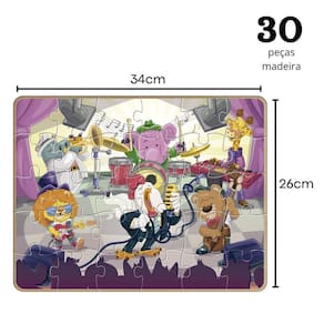 Conteúdo da Embalagem: 1 Quebra Cabeça 30 Peças Madeira - Banda dos Bichos