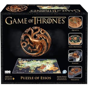 4D Cityscape Game of Thrones (GoT) 3D Time Puzzle of Essos (1400 peças) - O quebra-cabeça de Essos de Game of Thrones da 4D Cityscape dá vida à vibrante terra do popular programa de TV com locais icônicos como Braavos, Pentos, Meereen e muito mais! - Este quebra-cabeça exclusivo tem quatro dimensões — um mapa de quebra-cabeças, mapa topográfico, modelos 3D e réplicas com a dimensão final sendo o tempo representado por um pôster que detalha a história — Presente perfeito para fãs de Game of Thrones ou para iniciantes na série, inclui um livreto informativo, 45 bandeiras históricas, 10 sigilos, 3 marcadores de batalha e um conjunto em miniatura de ovos de dragão — Crie um mapa de quebra-cabeça verdadeiramente interativo que permite que você explore a história, o território e os marcos importantes de Westeros - Dimensões: 30" x 18" x 2", mais de 1350 peças e mais de 30 edifícios detalhados | Recomendado para maiores de 13 anos