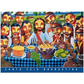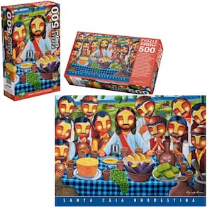 Descrição do produto : O baiano Eduardo Lima é um artista plástico, pintor e escultor autodidata, que se interessou pela arte desde os 8 anos de idade. Desenvolveu sua própria identidade no mundo artístico criando personagens inseridos na cultura do sertão nordestino. Já participou de exposições no Brasil e no exterior, obtendo várias premiações. Tem obras expostas na França, Itália, Inglaterra, Áustria, entre outros locais, além de trabalhos nacionais e internacionais, levando o nome do Brasil por onde passa! Descubra o fascínio do Puzzle de 500 Peças que captura a Santa Ceia Nordestina. Cada peça revela uma pintura marcante, com cores vibrantes e composições envolventes. Este quebra-cabeça não só oferece um desafio, mas também proporciona uma maneira única de apreciar a expressão artística nordestina. :