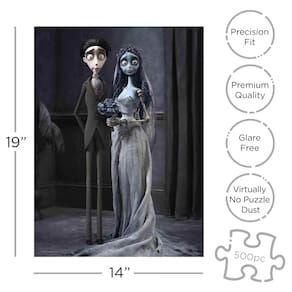- FILME DE NOIVA CORPSE QUEBRA-CABEÇA DE 500 PEÇAS JIGSAW: Divirta-se montando este quebra-cabeça de 500 peças com nosso casal favorito do filme de Tim Burton de 2005, Noiva Cadáver. Ele mede 35 x 48 cm quando concluído e vem em uma caixa em forma de caixão com um pôster bônus da imagem