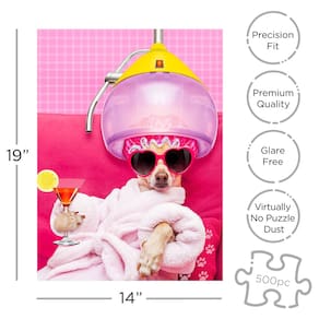 — Quebra-cabeça de 500 peças: bobagem não é muito melhor do que nosso quebra-cabeça Dog Spa de 500 peças. Este quebra-cabeça exclusivo mede 14 x 19 polegadas quando totalmente montado.