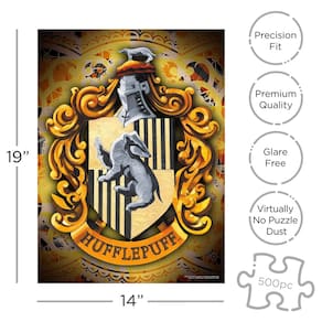 - HUFFLEPUFF! O Chapéu Seletor exclamou na sua cabeça. Você foi escolhido para montar este quebra-cabeça de 500 peças com o brasão da Lufa-Lufa, uma das casas lendárias de Hogwarts. Complete o quebra-cabeça e exiba orgulhosamente o brasão da sua casa