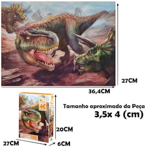 Quebra cabeça com linda paisagem da Batalha dos Dinossauros com 100 peças. Com um design inovador e cores vibrantes, este quebra cabeça proporciona a sensação de superação quando se consegue montar. As cores podem até ajudar, mas o grande segredo está no desenho das peças. Desafie-se!