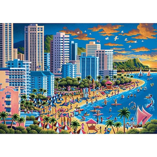 Buffalo Games - Eric Dowdle - Waikiki - Quebra-cabeça de 300 peças para adultos - Quebra-cabeça desafiador perfeito para noites de jogos - O tamanho final é 21,25 x 15,00 - Quebra-cabeça de 300 peças – Este quebra-cabeça de 300 peças é o nível perfeito de desafio. Medindo 54 cm. x 38 cm, este quebra-cabeça é uma ótima atividade noturna para toda a família, grupo de amigos ou você mesmo. Para adultos a partir de 14 anos. - Materiais da mais alta qualidade – as peças do quebra-cabeça são grossas e resistentes. Nossas matrizes de alta qualidade garantem precisão de corte a laser. Essa precisão produz muito menos "poeira de quebra-cabeça" em nossas caixas em comparação com os concorrentes e garante um corte limpo sempre. - IMAGEM DE PUZZLE APEX - Relaxe e aproveite o processo de quebra-cabeça enquanto "viaja" para alguns dos lugares mais bonitos, ou junte-se à diversão com nosso portfólio de licenciados, ou termine em estilo com artistas de renome mundial. - Pôster de bônus em cores completas – cada quebra-cabeça Buffalo Games inclui um pôster colorido para referência enquanto monta seu quebra-cabeça. Ou, para um desafio real, tente resolver sem o pôster na mão! Nossos pôsteres também incluem informações sobre a imagem. - Presente perfeito – Os quebra-cabeças não são apenas ótimos presentes para qualquer ocasião, incluindo aniversários, feriados, festas de inauguração de casa ou até mesmo apenas uma noite divertida com amigos. Eles também são ótimos "enchimentos" para qualquer estação de presentear.