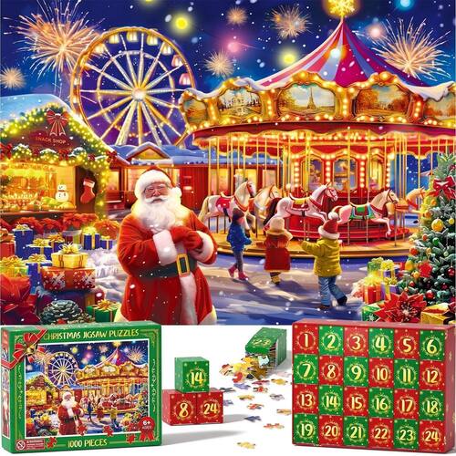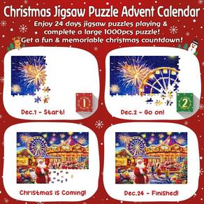 - Presentes surpresa de 24 dias: brinquedo de quebra-cabeça de 1000 peças. O calendário do advento de 2024, que assume a forma de um pequeno presente surpresa de brinquedo de quebra-cabeça em caixa, é o presente de contagem regressiva de Natal perfeito para adultos e crianças. Dentro há 24 caixas pequenas, cada uma contendo peças do quebra-cabeça. Cada dia se conecta a outros dias, então, após o Dia 24, você terá um grande quebra-cabeça completo de 1000 peças! Equo com um enorme manual de pôsteres em HD, é adorável e digno de pendurar como decoração de Natal