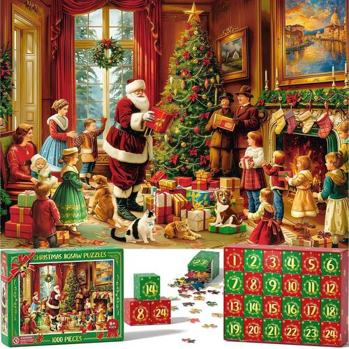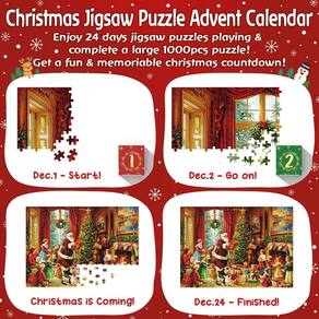 - Presentes surpresa de 24 dias: brinquedo de quebra-cabeça de 1000 peças. O calendário do advento de 2024, que assume a forma de um pequeno presente surpresa de brinquedo de quebra-cabeça em caixa, é o presente de contagem regressiva de Natal perfeito para adultos e crianças. Dentro há 24 caixas pequenas, cada uma contendo peças do quebra-cabeça. Cada dia se conecta a outros dias, então, após o Dia 24, você terá um grande quebra-cabeça completo de 1000 peças! Equo com um enorme manual de pôsteres em HD, é adorável e digno de pendurar como decoração de Natal