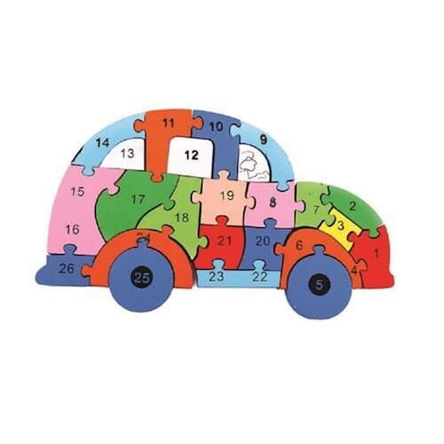 Quebra-cabeça educativo em formato de Carro, com 26 peças coloridas.