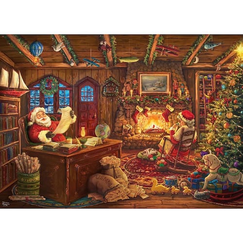 Ceaco - Thomas Kinkade - Holiday - Papai Noel verificando sua lista - Quebra-cabeça de 1000 peças - Contém um quebra-cabeça de 1000 peças de Thomas Kinkade. - Molde feito à mão com peças de formato exclusivo. Feito nos EUA. Fabricado de forma sustentável. - Apresenta imagens coloridas. - Colecione todos os estilos da sua coleção favorita. - Ótimo para noites em família, presentes, reuniões de férias, festas e muito mais. Quebra-cabeça de alta qualidade, inovador e desafiador da Ceaco, intrigando milhões desde 1987!