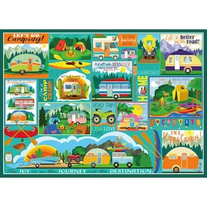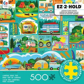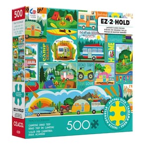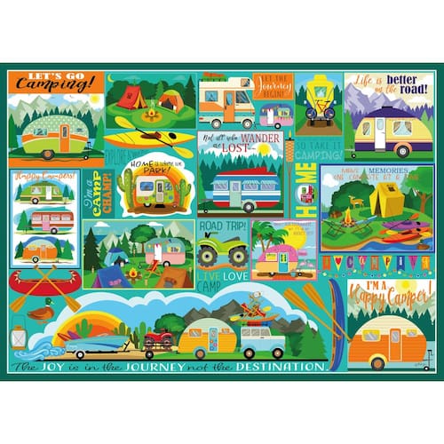 Ceaco - Tracy Flickinger - Viagem de acampamento - Quebra-cabeça 500 peças maiores - Contém um quebra-cabeça de 500 peças maiores. - Molde feito à mão com formas distintas, fabricado nos EUA com métodos sustentáveis. - Apresenta visuais vibrantes. - Colecione todos os estilos da sua coleção favorita. - Ótimo para noites em família, presentes, reuniões de férias, festas e muito mais. Quebra-cabeça de alta qualidade, inovador e desafiador da Ceaco, intrigando milhões desde 1987!
