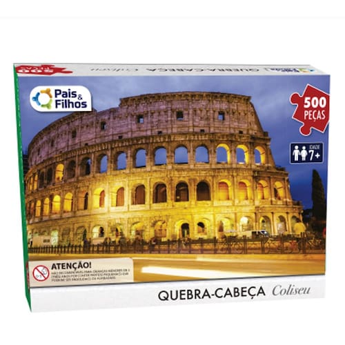 Fabricante - Pais & FilhosItens inclusos - 1 quebra-cabeça coliseuTamanho da imagem - 37 cm / 54 cmQuantidade de peças - 520 Código do fabricante - 7265 Composição - papel cartãoGarantia - 90 dias contra defeito de fabricaçãoprazo de validade - indeterminadoPaís de origem - BrasilIdade recomendada - recomendado maiores de 7 anos de idadeSelo de segurança do Inmetro - CE-BRI/CEPEX-N 01264-25 REGISTRO 003808/2019 - OCP 0046Aviso - as cores podem variar entre as imagens mostradas acima e o produto