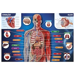 Um quebra-cabeça para você conhecer um pouco mais sobre a anatomia humana Ele traz uma imagem do corpo humano ilustrando os órgãos, como coração, rins, pulmões, estômago e intestino, e suas ligações, com destaque especial para o coração e o globo ocular. A imagem deste quebra-cabeça é meramente ilustrativa. As cores e os tamanhos dos órgãos não são exatamente estes.