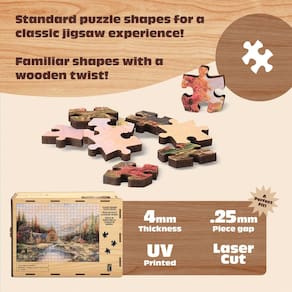 Buffalo Games - Thomas Kinkade - Quebra-cabeça de madeira Sierra Paradise - Peças de corte padrão - Quebra-cabeça de 500 peças - Quebra-cabeça de madeira de qualidade premium para adultos - O tamanho final é de 26,6 x 19 cm - Peças de quebra-cabeça de madeira clássicas e duráveis - O corte a laser de precisão garante um ajuste confortável e satisfatório - É o presente perfeito para qualquer entusiasta de quebra-cabeças em sua vida! - Pôster bônus colorido incluído para ajudar na resolução