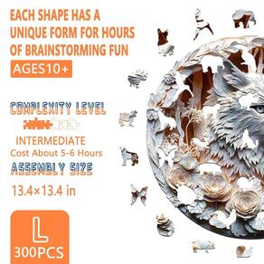 - Conjunto de quebra-cabeça de lobo branco – Você quer aproveitar a diversão dos quebra-cabeças? Nosso quebra-cabeça de madeira é uma ótima escolha. Este quebra-cabeça de madeira retrata um belo lobo na floresta. A imagem inteira mostra um efeito visual exclusivo de corte em papel branco. O quebra-cabeça de madeira é cortado em formas únicas para dar a você uma experiência interessante. Venha e encontre a beleza especial em brinquedos de madeira!
