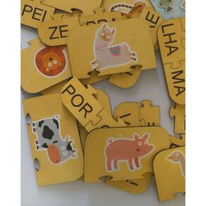 O que você vai encontrar neste kit? 36 mini quebra-cabeças de madeira com figuras de animais e seus nomes separados em sílabas. 1 livro de atividades com desafios que reforçam leitura, associação e percepção visual. Material resistente, perfeito para uso em casa, escolas e terapia.