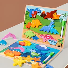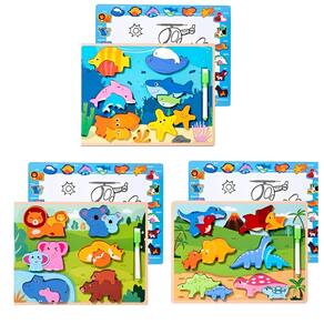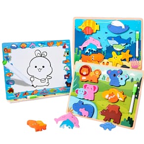 Brinquedo 2 em 1 Quebra-Cabeça 3D em MDF com Quadro Branco Infantil Educativo