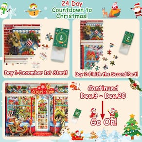 - Qualidade premium: o quebra-cabeça de Natal do calendário do advento é feito de papelão reciclável com acabamento fosco premium, sem brilho, não é fácil de desbotar, é tinta segura e não tóxica. Cada peça do quebra-cabeça é cortada com precisão para garantir um ajuste perfeito entre as peças, borda sem rebarbas e quase sem poeira, proporcionando a melhor experiência.