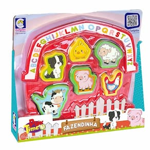 Quebra-Cabeça Didático - 6 peças - Play Time Fazendinha - Cotiplás: as crianças vão adorar encaixar os animais no lindo celeiro da Fazendinha Play Time. Ele é um divertido quebra cabeça didático, que estimula a coordenação motora das crianças, promovendo o desenvolvimento cognitivo, noções de cores, formas e tamanhos. Base com forma de celeiro para encaixar e brincar. Os bebês podem se encantar com os adoráveis personagens da fazenda, como o amigável porquinho e a vaquinha fofinha. Desenvolve a associação das formas percepção visual e o raciocínio. Muita diversão e aprendizado em um só brinquedo! Detalhes: • A criança pode brincar de encaixar os animais no celeiros quantas vezes quiserem • Peças grande e bordas arredondadas • Pecinhas coloridas e educativas para seu bebê aprender animais e cores Informações: • Produto: Quebra-Cabeça Play Time Fazendinha • Marca: Cotiplás • Coleção: Play Time • Tipo: Brinquedo Educativo de Encaixe de Formas • Categoria: Brinquedos de Encaixar e Empilhar • Conteúdo: - 01 base - 06 peças • Recomendação: para bebês a partir de 12 meses de idade Especificações: • Referência: 2721 • Código de Barras: 7896964627215 • Embalagem (C x A x L): • Embalagem (Peso): 0.334 kg • Material / Composição: Plástico • Registro: 008362/2021 • Certificado: Órgãos Autorizados - OCP´S (Organismos de Certificação de Produtos) Aviso: • As imagens são meramente ilustrativas • Os pesos, tamanhos e medidas são aproximados • As cores e estampas dos produtos podem ter variações • As informações são de responsabilidade do fabricante ou fornecedor