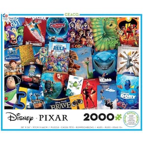 PRODUTO INTERNACIONAL. Que tal se divertir e passar o tempo montando um incrível quebra-cabeça da Disney? Com 2000 peças coloridas, você vai encontrar todos os seus personagens favoritos dos clássicos animados da Disney / Pixar! Quando finalizado, o quebra-cabeça mede 38 polegadas x 26 polegadas e é orgulhosamente feito nos EUA pela Ceaco