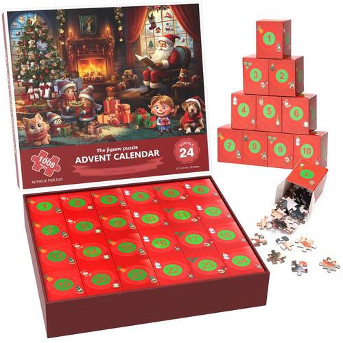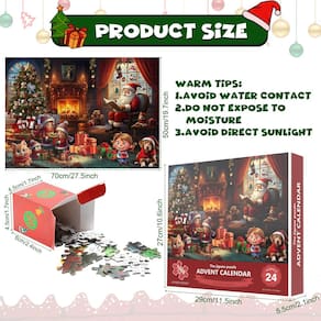 - Quebra-cabeça do calendário do Advento de Natal: linda caixa resistente contendo 1008 peças divididas em 24 caixas pequenas, criando um quebra-cabeça com contagem regressiva do calendário de Natal, vem com um pôster de referência. O quebra-cabeça concluído mede 50* 70 cm/19,7* 27,5 polegadas