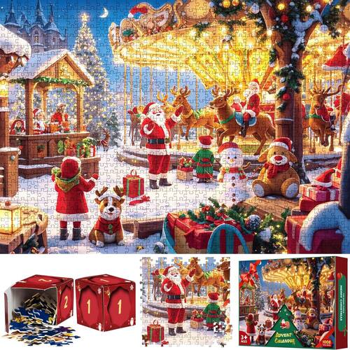 Quebra-cabeças de Natal do Calendário do Advento de 2024 - Quebra-cabeça de calendário de contagem regressiva de 24 dias para adultos - Quebra-cabeça de 1008 peças, decoração de Natal para casa