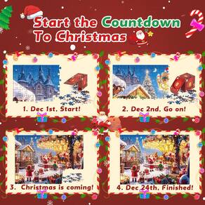 -?Quebra-cabeça do Calendário do Advento de 2024?Este é um quebra-cabeça de Natal de alta qualidade com padrões requintados e cores brilhantes. O quebra-cabeça de 1008 peças é embalado em 24 caixas, com 42 peças em cada caixa, projetado para uma contagem regressiva de Natal divertida e significativa. O pacote contém um pôster de referência 1:1 que ajuda você a terminar o quebra-cabeça.