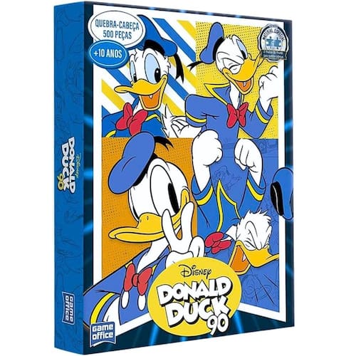 Quebra-cabeça Donald 90 anos - 500 Peças - 3261 Toyster Descrição: Quebra-cabeça Donald 90 Anos com 500 Peças, da Toyster, é uma homenagem imperdível a um dos personagens mais icônicos da Disney. Composto por quatro imagens do Pato Donald, este quebra-cabeça celebra seus 90 anos de história com um design nostálgico e encantador. Quando montado, mede 47,8 x 34,8 cm, tornando-se uma peça decorativa ideal para fãs de todas as idades. Feito com materiais de alta qualidade, ele oferece um encaixe perfeito e uma montagem divertida. Indicado para maiores de 10 anos, é uma ótima maneira de estimular a concentração e aproveitar momentos relaxantes.